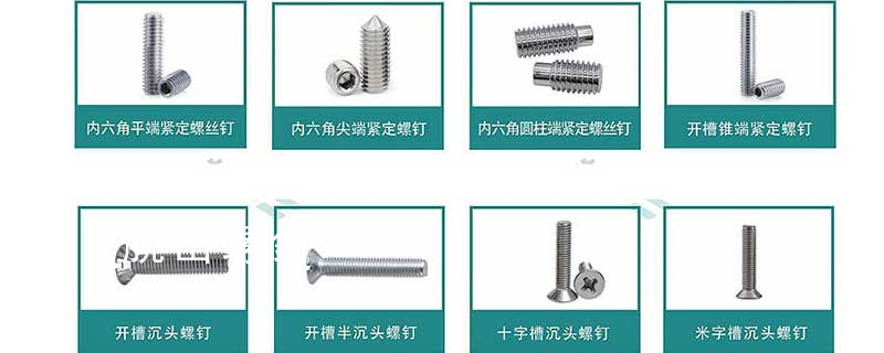 螺絲 螺絲釘可分為:不脫出螺釘、組合螺釘、墻板釘、纖維板釘、鏈帶螺釘、鉆尾螺釘、微型螺釘、電子螺釘、木螺釘等等。根據它的頭型又可分為:半沉頭、六角頭法蘭面、沉頭方頭、扁圓頭、圓柱頭、盤頭等等,根據螺絲的槽 內六角凹端緊定螺釘GB/T 80-2000 方頭長圓柱球面端緊定螺釘GB 83-88 方頭凹端緊釘螺釘GB 84-88 方頭長圓柱端緊定螺釘GB 85-88 方頭短圓柱錐端緊定螺釘 GB 86-88 十字槽盤頭螺釘GB/T 818-2000 六角頭不脫出