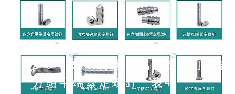 不銹鋼螺絲產品主要有:外六角螺栓、圓柱頭內六角螺釘(杯頭)、內六角凹端緊定螺釘(凹端機米)、內六角平端緊定螺釘(平端機米)、內六角尖端緊定螺釘(尖端機米)、內六角柱端緊定螺釘(柱端機米)、沉頭內六角螺釘(平杯) GB31.1—88六角頭螺桿帶螺孔栓細牙A和B級 GB31—76 15 GB32.1—88六角頭頭部帶孔螺栓A和B級 GB32—76 16 GB32.2—88六角頭頭部帶孔螺栓細桿B級 GB32—80 17 GB32.3—88 六角頭頭部帶孔螺栓細牙A和B級 GB3